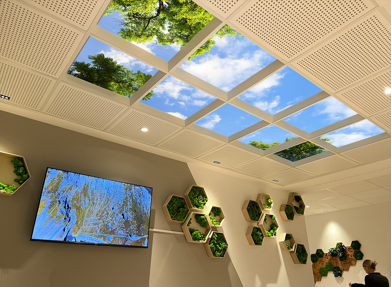 Fensterillusion für fensterlose Räume – natürliches Lichtgefühl dank LED-Technologie.